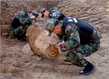 도착 직후 탄종을 확인한 EOD요원들은 우선 만약을 대비해 공사장 인부와 주변 시민들을 대피시켰다. 이어 특수장비를 이용해 폭발물을 지상으로 끌어올린 뒤 전후방 신관을 제거해 안전을 확보하고 안전한 장소로 이동시켰다.