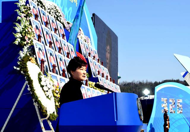 박 대통령은 이날 대전국립현충원에서 열린 ‘천안함 용사 5주기 추모식’에 참석, 추모사를 통해 “천안함 용사들과 선열들이 피와 땀으로 지켜온 조국을 더욱 부강하고 평화로운 나라로 만들어나가는 일은 오늘날 우리에게 주어진 역사적 사명으로, 이러한 국가과제를 성공적으로 추진하기 위한 토대가 바로 튼튼한 안보”라며 이렇게 말했다.