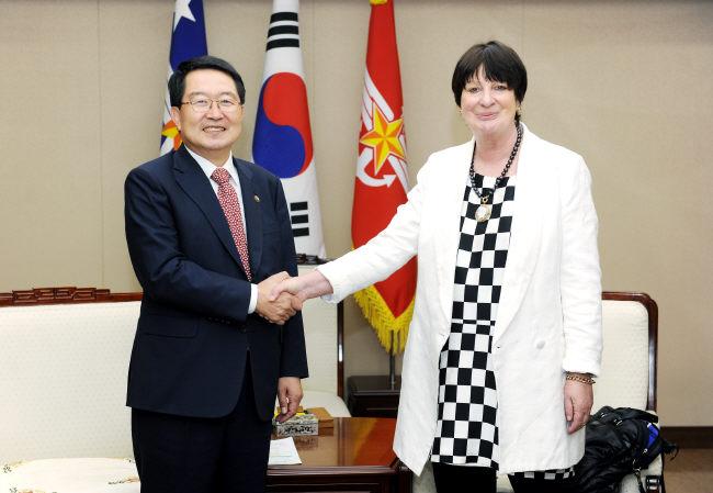백승주 국방부 차관은 22일 뉴질랜드 헬렌 퀼터(Helen Quilter) 국방차관과 서울 국방부에서 ‘한·뉴질랜드 국방차관 대담’을 했다.
