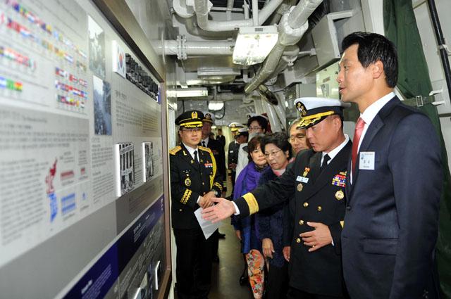 한편, 이날 저녁에는 궂은 날씨에도 이용준 대사를 비롯한 공관 관계자와 6·25전쟁 참전 이탈리아 용사, 이탈리아 해군 관계자 등이 참가한 함상 리셉션이 강감찬함 함상에서 열렸다. 특히 함상 리셉션에는 이탈리아 주재 한국 대사관에서 오는 23일까지 ‘조선의 시크릿 가든’이라는 이름으로 개인전을 열고 있는 김양희 작가도 직접 참여해 자리를 빛냈다. 김 작가는 “로마에서 개인전을 진행하는 중 대한민국 해군 입항 소식을 듣고 한걸음에 달려왔다. 대한민국 문화를 알리는 일뿐만 아니라 군사교류도 활발히 이루어지길 바란다”라고 소감을 밝혔다.
