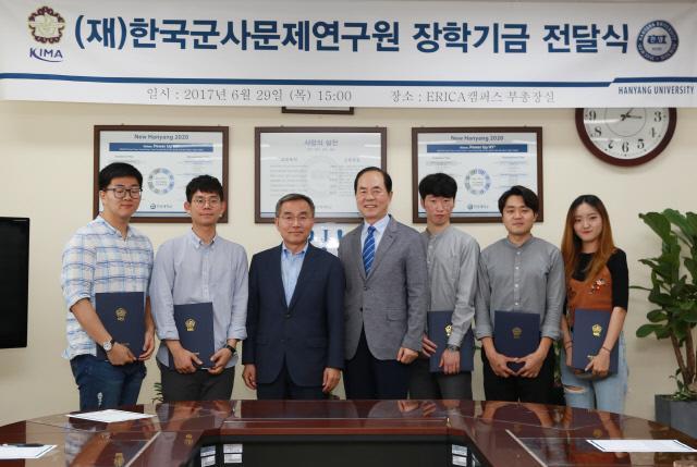 한국군사문제연구원(KIMA)은 29일 한양대학교 ERICA캠퍼스(이하 한양대)에서 ‘2017년 KIMA 호국장학금 전달식’을 가졌다.