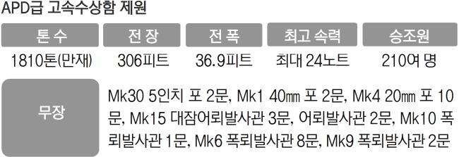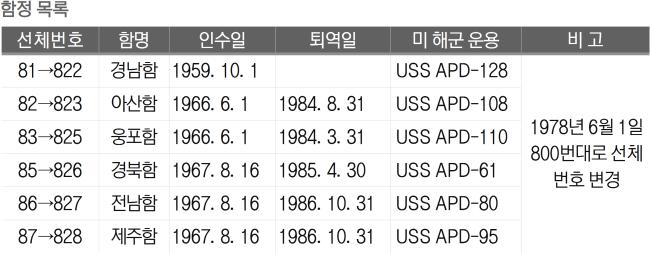 고속수송함에는 5인치 함포가 장착돼 화력이 막강했다. 한국 해군의 기존 함정은 3인치 함포가 주포였다. APD급 고속수송함 도입이 한국 해군의 5인치 함포 시대를 연 것이다.