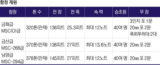 우리 해군이 도입한 MSC급은 3가지 형태다. 초창기 모델인 O급과 실질적으로 MSC급인 268·294급이 주인공이다.