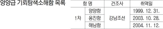 해군은 1986년부터 강경급 기뢰탐색함 6척을, 1999년부터 양양급 기뢰탐색소해함 3척을 취역시켰다. 9척의 소해함은 ‘우리의 항적이 다른 함정의 항로’라는 각오 아래 지금 이 순간에도 해군 유일의 기뢰대항 전력으로 동·서·남해를 누비고 있다.