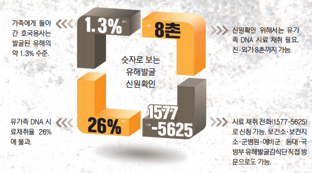 또 “국유단은 마지막 6·25 전사자 한 분까지 가족의 품으로 돌려드리기 위해 최선을 다할 것”이라며 “유해발굴사업의 숭고한 의미를 이해해 더욱 많은 사람이 유전자 시료 채취에 참여하기를 바란다”고 신원확인에 대한 국민적 동참을 호소했다.