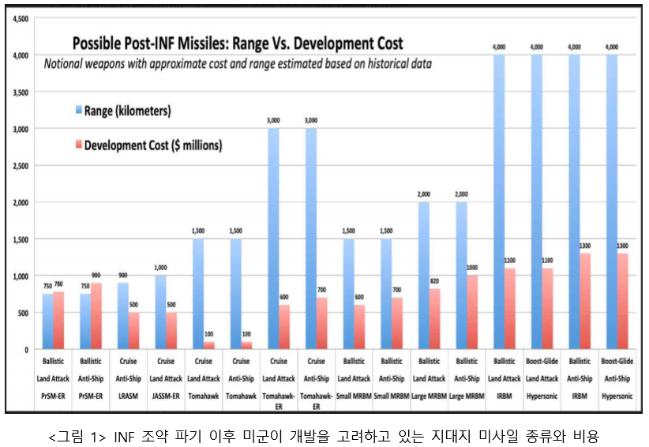 미군은 이러한 악몽과 같은 상황을 피하기 위해 많은 고심을 한 것 같다. 공해전투(air-sea battle) 개념을 논의한 것도 실상 미군의 자산을 중국의 중거리미사일로부터 보호하기 위한 것이었다. 해·공군 자산을 활용하여 선제적으로 중국의 전력을 무력화하기 위한 개념이었던 것이다. 그러나 중국의 군사력이 현대화되면서 대륙 깊숙이 있는 중국군의 중거리미사일전력을 무력화하 는 일은 너무나 위험한 과업이 되어버렸다. 미군은 값비싼 항공자산과 해상자산의 안전이 담보되지 않은 채 작전을 수행해야 했기 때문이다. 미군은 안전이 확보된 지상에서 대량으로 값싸게 중국군의 군사자산을 타격할 수 있는 수단이 필요했다. 그 해답이 지상발사 중거리미사일이다. INF 조약 파기로 미국은 자유롭게 중거리미사일을 생산할 수 있게 되었다.