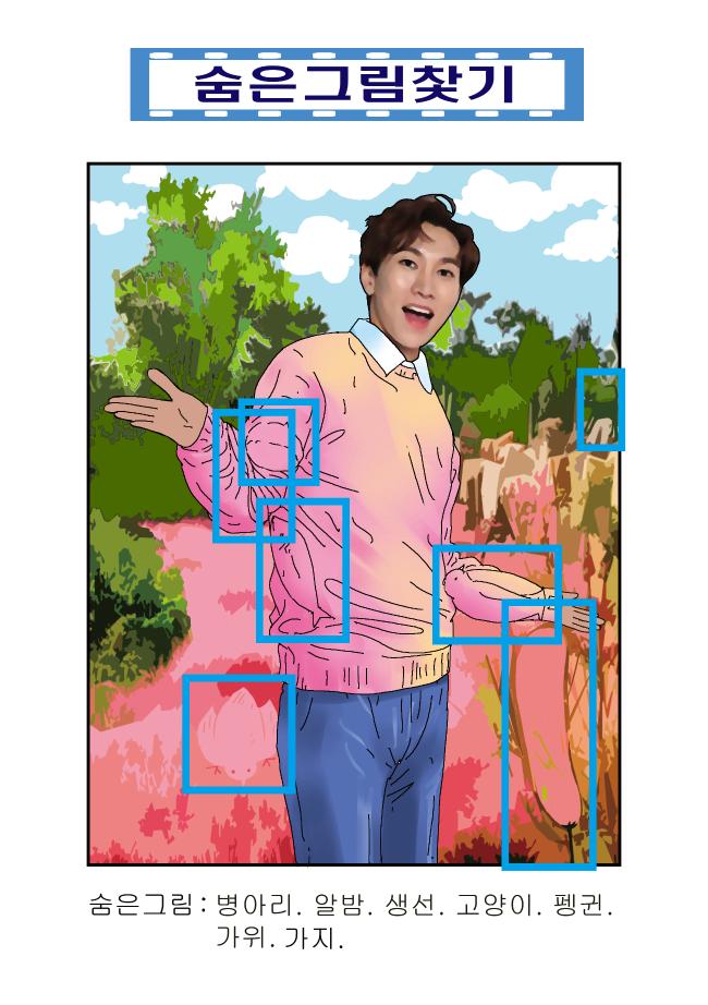 숨은 그림: 병아리, 알밤, 생선, 고양이, 펭귄, 가위, 가지