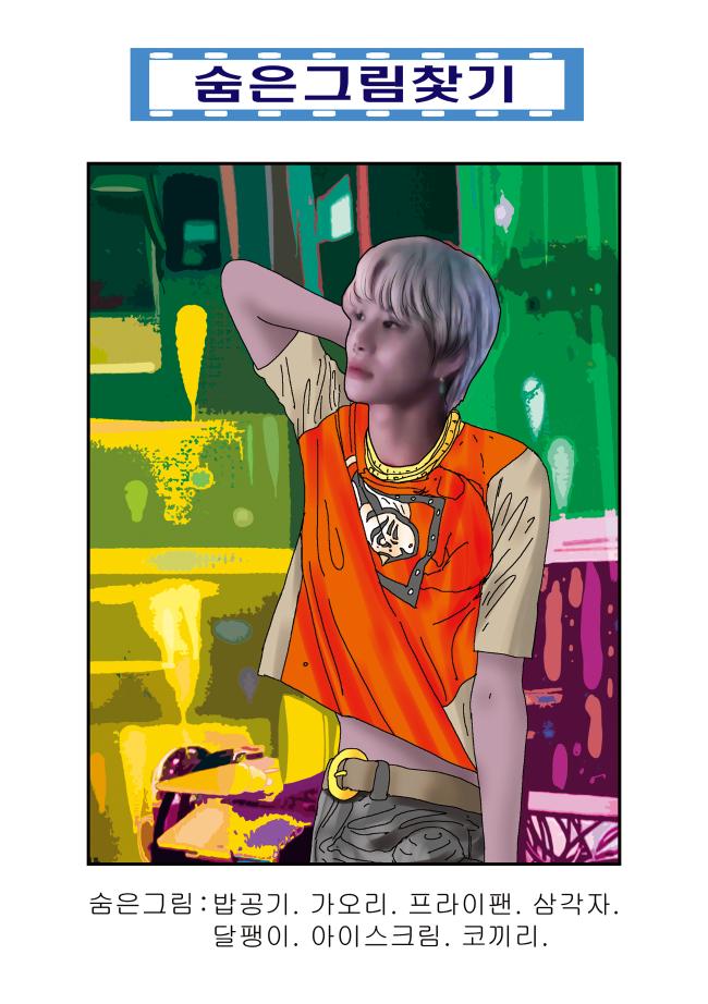숨은 그림: 밥공기, 가오리, 프라이팬, 삼각자, 달팽이, 아이스크림, 코끼리