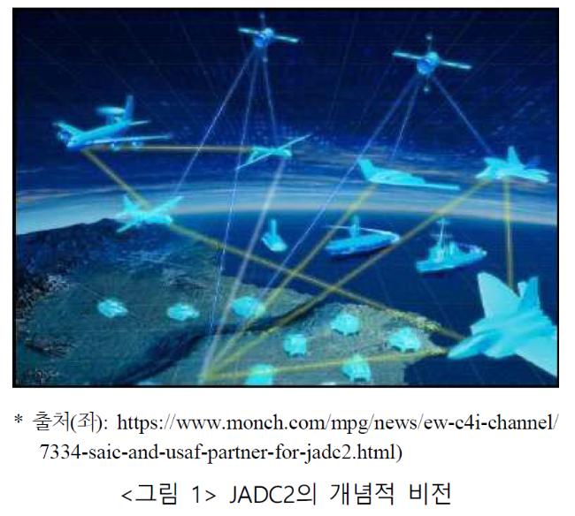 JADC2 전략의 출현 배경은 전장의 영역이 육·해·공의 영역에서 사이버 및 우주 공간으로 확대되는 다영역 작전(MDO: Multi-Domain Operation) 개념과 밀접한 관련이 있으며 이는 현재 미군의 지휘통제 구조가 2018년에 수립한 미 국방전략서(NDS: National Defense Strategy)를 구현할 수 없다는 판단에 따른 후속조치로 볼 수 있다.