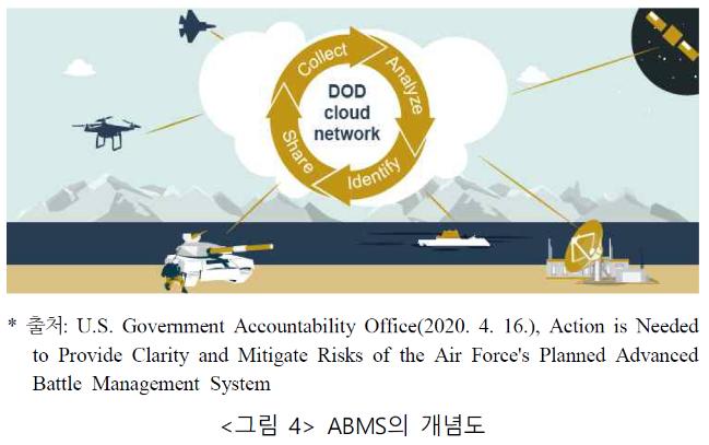 미 공군의 ABMS(Advanced Battle Management System) ABMS 사업은 미 국방부의 JADC2 능력을 구현하기 위해 항공기, 드론, 함정 등 무기체계의 센서를 연결하는 네트워크를 구축하여 모든 영역에서의 위협과 실시간 작전상황을 제공하는 미 공군의 차세대 지휘통제 체계이다.