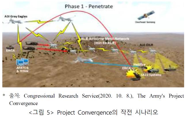 Project Convergence 사업은 군인, 무기체계, 지휘통제, 정보, 지형으로 5개의 핵심요소를 중심으로 설계되었으며 육군 미래사령부는 매년 Project Convergence를 수행한 후 얻은 결과를 다음 연도 사업에 반영하여 발전시키고 있다. 2020년에 열린 Project Convergence 2020에서는 군인과 민간인을 포함한 750여 명이 참여하여 지리적으로 분산된 군의 지휘통제를 위한 새로운 방법을 실험하기 위해 인공지능, 자율성, 로봇 공학을 포함한 다양한 기술을 실증하였다. 이후 미 육군은 Project Convergence 2021의 일환으로 미 공군과 해군 체계를 통합할 계획이며, Project Convergence 2022에서는 호주, 캐나다, 뉴질랜드, 영국과 같은 정보공유 동맹국을 포함하여 확장해 나갈 계획이다.