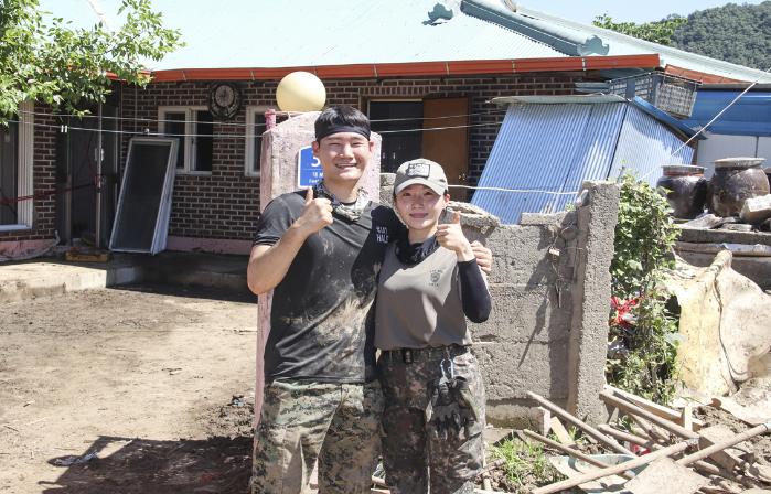 한 달 후 결혼을 앞둔 이들은 예정된 휴가도 미루고 가장 먼저 수해 현장으로 달려가 피해 주민의 일상 복귀를 돕고 있다. 부부는 군인 자녀들이기도 하다. 이 대위는 “결혼 준비도 중요하지만 지금은 주민들이 하루빨리 일상으로 돌아갈 수 있도록 돕는 것이 먼저”라며 “부모님께서 늘 보여주신 헌신의 길을 따라가고 싶다”고 말했다.