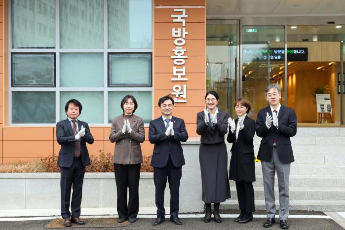 안규백 장관이 지난 19일 국방홍보원 신청사 현판 제막식에 참석한 뒤 기념촬영을 하고 있다. 이날 안 장관은 홍보원의 2025년 업무성과와 2026년 추진중점 및 계획을 보고받고 팀장급 이상 간부들과 간담회도 가졌다. 이어 신청사 내 신문·방송 제작 설비와 운영 현황을 점검하면서 직원들을 격려한 안 장관은 “사초(史草)를 기록한다는 마음으로 임무에 충실해 달라”고 당부했다. 한재호 기자