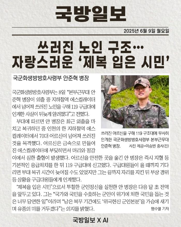 국방일보 신문에 소개된 장병들의 활약상을 소재로