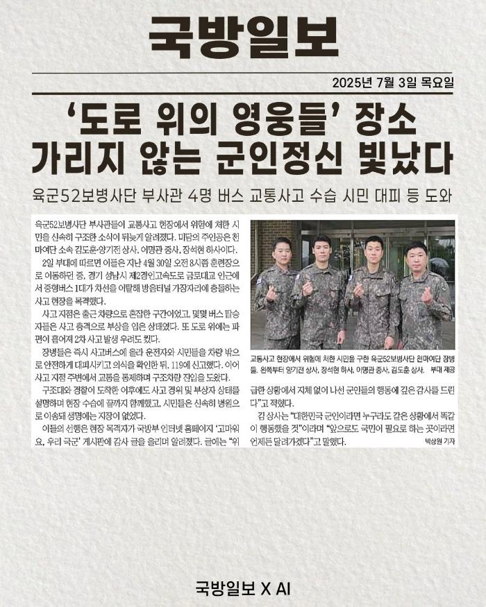 국방일보 신문에 소개된 장병들의 활약상을 소재로