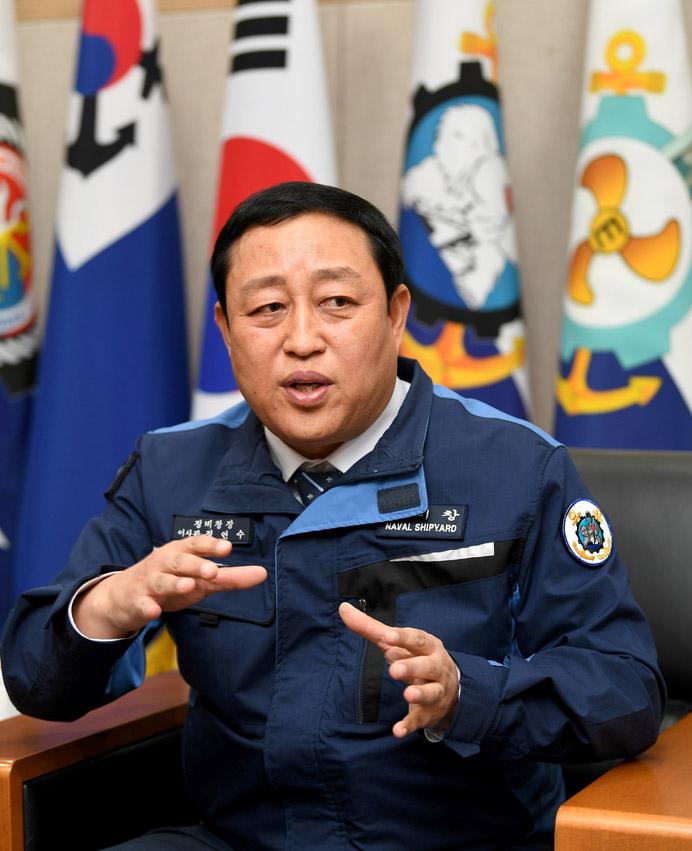 정연수(군무이사관) 정비창장은 지난해 3월 해군대령 예편 후 같은 해 4월 취임했다. 그는 자신에 관해 말할 때 직위보다 먼저 현장 얘기를 꺼낸다. 정 창장은 “현역 시절 기관 정비를 전담하는 엔지니어 장교였다”고 스스로를 소개했다. 함정에 올라 기관을 관리하고 잠수함 엔지니어 장교로 현장 경험을 탄탄히 쌓았다. 육상 근무 때도 정비창, 잠수함 수리창, 함대 정비지원조직을 경험했다.