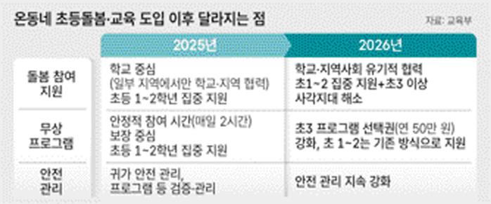 특히 지난해 11월 마련한 ‘방과후학교 검증·관리 강화 방안’에 따라 강사의 교육 중립성 준수 의무화, 강사 결격사유 신설 등도 차질 없이 추진한다. 교육부와 17개 시·도 교육청은 온동네 초등돌봄·교육 정책이 현장에 빠르게 안착해 학생과 학부모가 오는 3월부터 정책의 혜택을 누릴 수 있도록 앞서 지난해 12월부터 2026학년도 운영을 준비해 왔다.