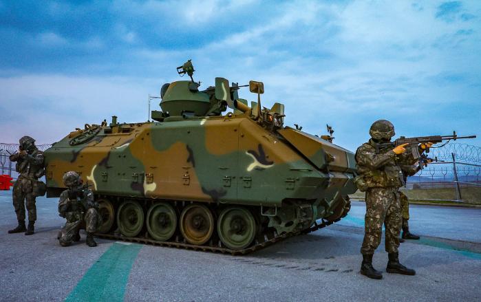 기지 곳곳에는 K200A1 장갑차가 배치되고 군견을 동반한 순찰조가 투입돼 촘촘한 포위망을 구축하고 있었다. 장갑차 앞에서 매의 눈으로 주변을 경계하던 김세현(하사) 기동타격담당은 “이동 차량 검문검색과 차단선 구축 등 철저한 경계가 기지 방호의 핵심”이라고 힘줘 말했다. 이토록 삼엄한 경계망과 즉각적인 대응에 막혀 기지 내로 스며들려던 적 특작군은 결국 발목을 잡혔고, 치열한 교전 끝에 전원 섬멸됐다.