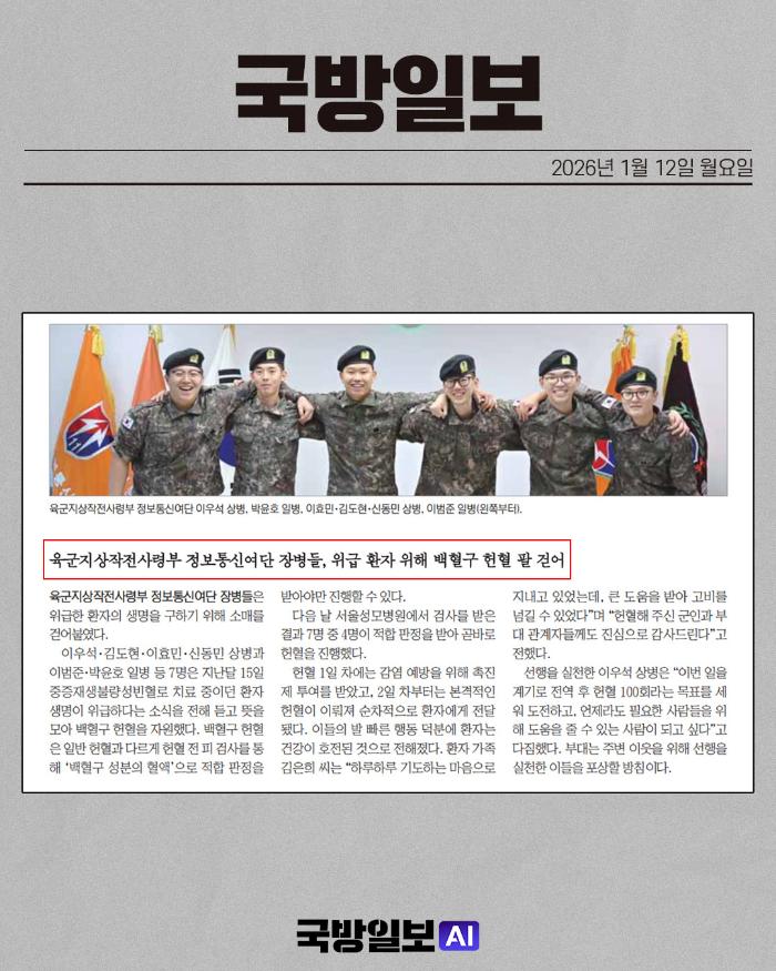 국방일보 신문에 소개된 장병들의 활약상을 소재로