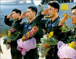 비행단 지휘관 및 참모 ·소속 장병들의 환호속에 F-5 전투기를 타고 주기장에 안착, 8만 시간 무사고 기록의 주인공이 된 이기석(38·공사38기)소령은 “비행안전에 대한 대대원들의 각별한 관심과 정성으로 대기록 수립이 가능했다”며 “앞으로도 안전에 바탕을 둔 실전적 전투력 향상을 위해 더욱 매진해 나가겠다”고 말했다.