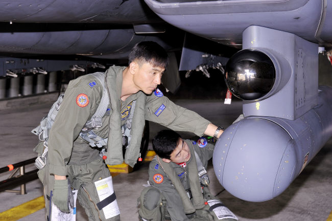 공군11전투비행단의 이현우 소령이 독수리훈련의 일환으로 진행된 한미 연합 공중훈련에 참가하면서 F-15K의 정밀 폭격 |