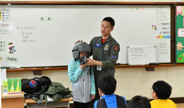 이날 일일 선생님으로 나선 11전비 소속 전투조종사 전재휘(공사 60기) 대위는 직접 학교를 찾아가 대한민국 공군과 전투조종사가 하는 일, 공군인이 되는 방법 등 학생들의 눈높이에 맞춘 교육을 했다.