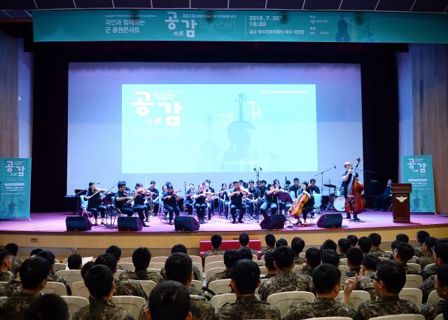 공군16전투비행단(16전비)은 지난 30일 시각장애인 오케스트라 한빛 예술단을 부대로 초청해 ‘국민과 함께하는 군 응원콘서트, 공감’ 음악회를 개최했다.