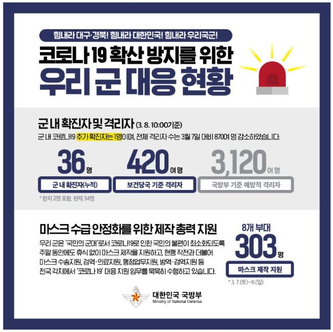 [코로나19] 우리 군 대응 현황 (3월8일 10시 기준)