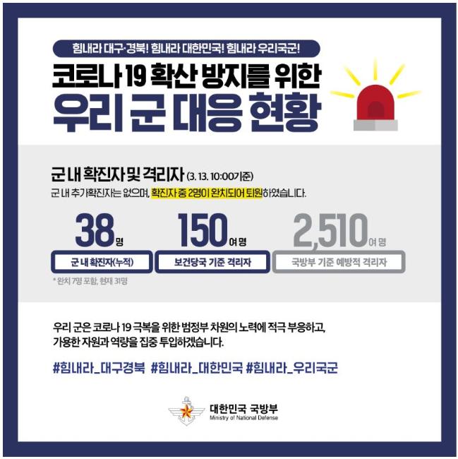 [코로나19] 우리 군 대응 현황 (3월 13일 10시 기준)
