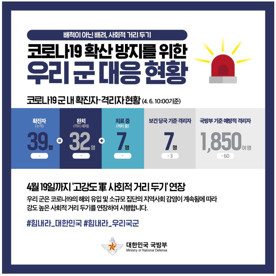 [코로나19] 우리 군 대응 현황 (4월 6일 10시 기준)