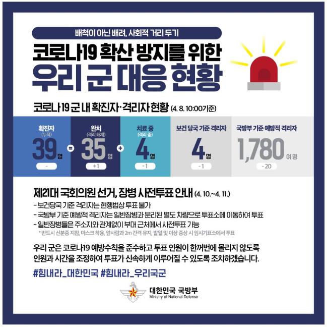 [코로나19] 우리 군 대응 현황 (4월 8일 10시 기준)