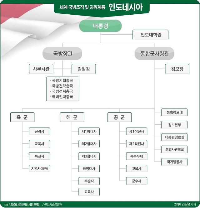인도네시아군(Tentara Nasional Indonesia, TNI)은 통합군 체제로 운영되며 대통령이 통합군사령관을 통해 지휘권을 행사한다.