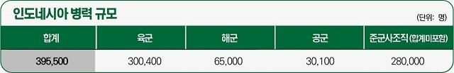 SIPRI의 재래식 무기 수출·입 DB에 따르면 2010~2019년간 인도네시아의 무기수입 규모는 1990년 불변가 기준 약 52억 달러 수준이다. 해당 기간 중 한국으로부터의 수입 규모가 가장 크고, 미국·영국·러시아 순으로 이어진다. 장비별 수입 비중은 항공기가 39.0%로 가장 높고, 함정 30.1%, 미사일 7.7% 순으로 이어진다.