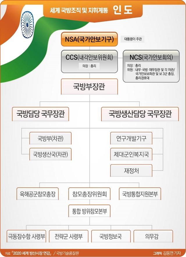 인도군의 통수권자는 대통령으로서 전·평시 및 국가재난 시 군 통수권을 행사하지만, 평시 군사력 건설 등 관리 및 유지권한은 내각안보위원회(Cabinet Committee on Security, CCS) 소관이다.