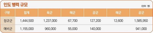 인도군은 중국과 파키스탄을 주요 경쟁 대상으로 설정하고 있으며, 대규모 준군사 병력을 통해 국내 안보를 유지하는 한편 국경지대에 주요 병력을 배치하여 분쟁 상태에 있는 국경 방어에 노력한다.