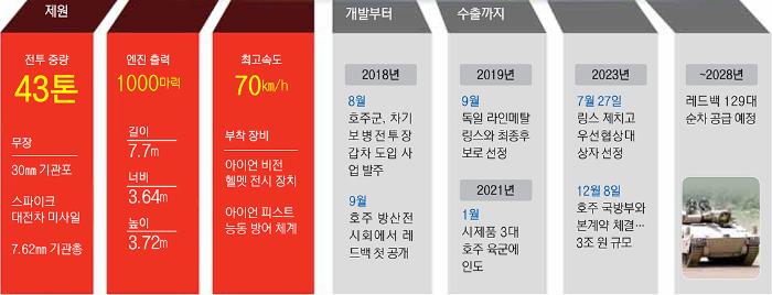 레드백은 지난 7월 독일 라인메탈사의 ‘링스’를 제치고 호주군 궤도형 보병전투장갑차 도입 사업의 우선협상대상 기종으로 선정된 데 이어, 이번에 호주 육군의 차기 장갑차로 최종 낙점됐다. 한화에어로스페이스는 이번 계약에 따라 레드백 129대를 오는 2028년까지 순차 공급할 예정이다.