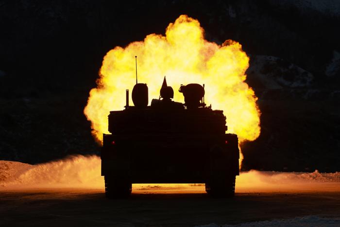혹한기 훈련에 참가한 육군8기동사단 백호대대의 K2 전차가 강력하게 한 발의 포탄을 발사하고 있는 모습을 배경으로 캘리그래퍼 이찬호 작가가 '김성근 감독의 생각'을 아름다운글씨로 담아 주셨습니다.