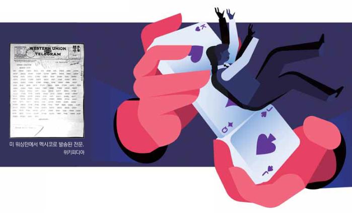그런데 영국을 지나는 해저케이블을 감청한 영국 해군 정보국(NID)이 암호화된 전문 내용을 해독하는 데 성공해 관련 정보를 입수했다. 영국은 자신들이 미국의 외교전문까지 감청하고 있다는 사실이 알려지지 않도록 하려고 멕시코에 파견된 영국 정보요원이 현지에서 통신사 직원을 매수해 입수한 것으로 정보 출처를 위장, 전보 내용을 미국에 전달했다. 워싱턴의 미국 통신사(웨스턴 유니언·Western Union)가 멕시코로 발송한 것으로 미국이 정보의 객관성을 확인할 수 있도록 정교하게 기획한 것이다.