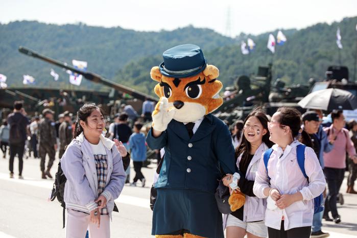 선생님의 손을 잡고 단체로 행사장을 찾은 어린이 관람객들은 처음 보는 군복과 커다란 장비에 눈이 휘둥그레졌다. 안내 장병들 도움으로 장비에 올라 기념사진을 남기고, 육군 캐릭터 ‘호국이’와 하이파이브 하는 이들의 얼굴에는 웃음꽃이 활짝 피었다.