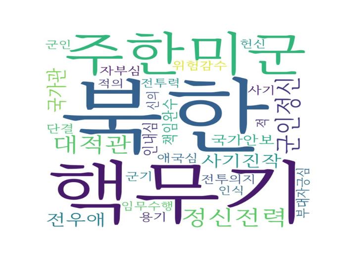 또 심층 분석을 위해 설문 응답자 중 10명(간부 7명, 병사 3명)을 선정해 국방일보 구독일지 작성 및 서면 인터뷰를 했다. ‘5일간 읽은 국방일보 중 가장 기억에 남는 내용’ 등 응답자들의 서면 인터뷰 결과는 텍스트 마이닝 기법을 활용한 ‘토픽 모델링(topic modelling)’으로 구축해 분석 결과를 파악할 수 있도록 했다.