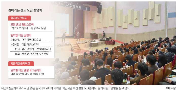 김동호(소장) 학생군사학교장은 “장교 임관 때 누리는 비전과 가치를 알리고, 국방부에서 추진하는 초급간부 처우 개선 정책 등을 적극 홍보해 우수 인재를 선발하겠다”고 말했다.