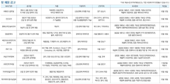 *자료 제공=잡코리아(채용공고는 기업 사정에 따라 변경될 수 있습니다.)
