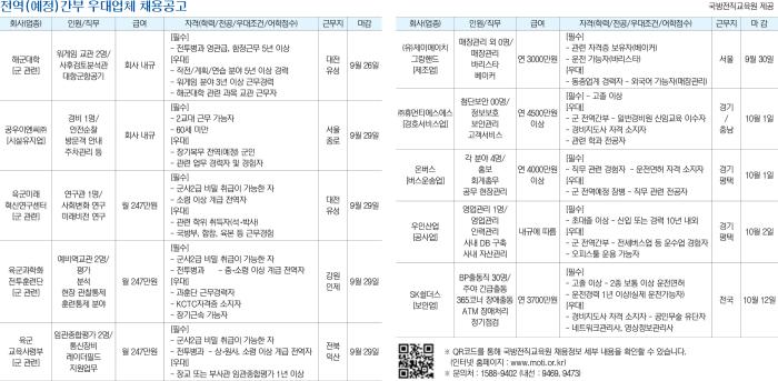 국방전직교육원 제공* QR코드를 통해 국방전직교육원 채용정보 세부 내용을 확인할 수 있습니다. (인터넷 홈페이지 : www.moti.or.kr)* 문의처 : 1588-9402 (내선 : 9469, 9473)