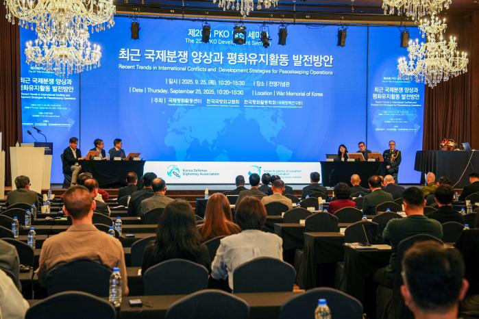국방대학교 국제평화활동센터는 지난 25일 서울 용산구 전쟁기념관에서 한국국방외교협회·한국평화활동학회와 함께 ‘제20회 PKO(평화유지활동) 발전 세미나’를 개최했다(사진). ‘최근 국제분쟁 양상과 평화유지활동 발전방안’을 주제로 열린 이번 세미나에는 군 PKO 관계자, 해외파병을 앞둔 장병, 29개국 주한 외국대사 및 국방무관, 국제 안보 전문가 등 200여 명이 참석했다.