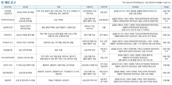 *자료 제공=잡코리아(채용공고는 기업 사정에 따라 변경될 수 있습니다.)