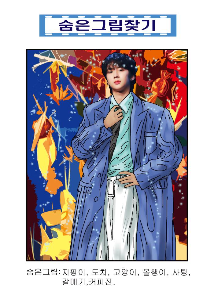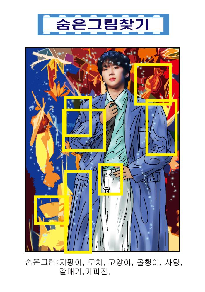 숨은 그림 : 지팡이, 토치, 고양이, 올챙이, 사탕, 갈매기, 커피잔