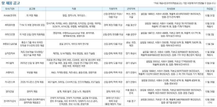 *자료 제공=잡코리아(채용공고는 기업 사정에 따라 변경될 수 있습니다.)