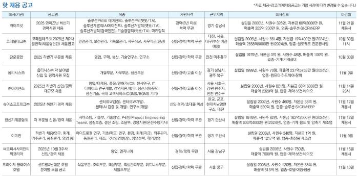 *자료 제공=잡코리아(채용공고는 기업 사정에 따라 변경될 수 있습니다.)