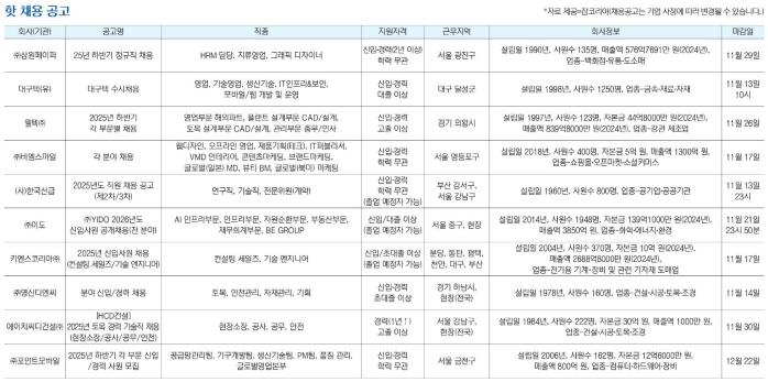 * 자료 제공=잡코리아(채용공고는 기업 사정에 따라 변경될 수 있습니다.)