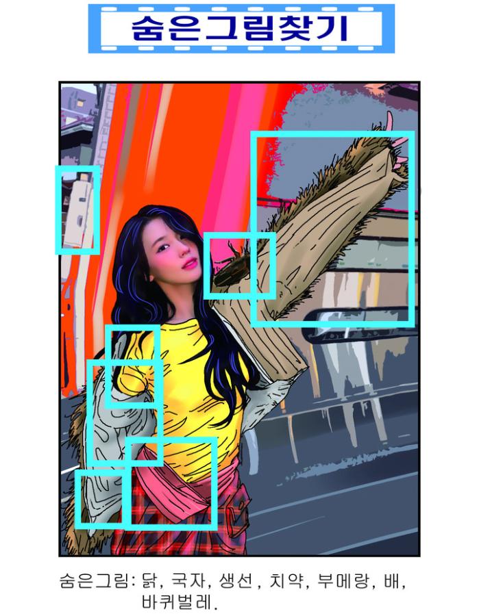숨은 그림 : 닭, 국자, 생선, 치약, 부메랑, 배, 바퀴벌레